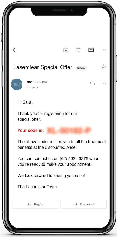 You can book your appointment when you are ready by simply calling the phone number on the email or booking direct online.